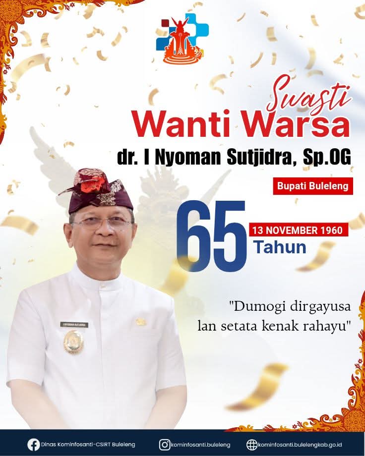 Semoga selalu diberkahi kesehatan, semangat, dan kebijaksanaan untuk terus memimpin dengan hati dan membawa Buleleng menuju masa depan yang gemilang.